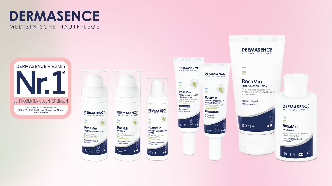 Rötungen und empfindliche Haut können den Alltag deutlich beeinflussen. Die medizinische Hautpflege-Serie DERMASENCE RosaMin wurde speziell entwickelt, um zu beruhigen, zu schützen und das Hautbild sichtbar zu harmonisieren – Tag für Tag. Jetzt ergänzt eine neue, hellere Nuance der DERMASENCE RosaMin Getönten Tagespflege hell mit LSF 50 das Sortiment.
